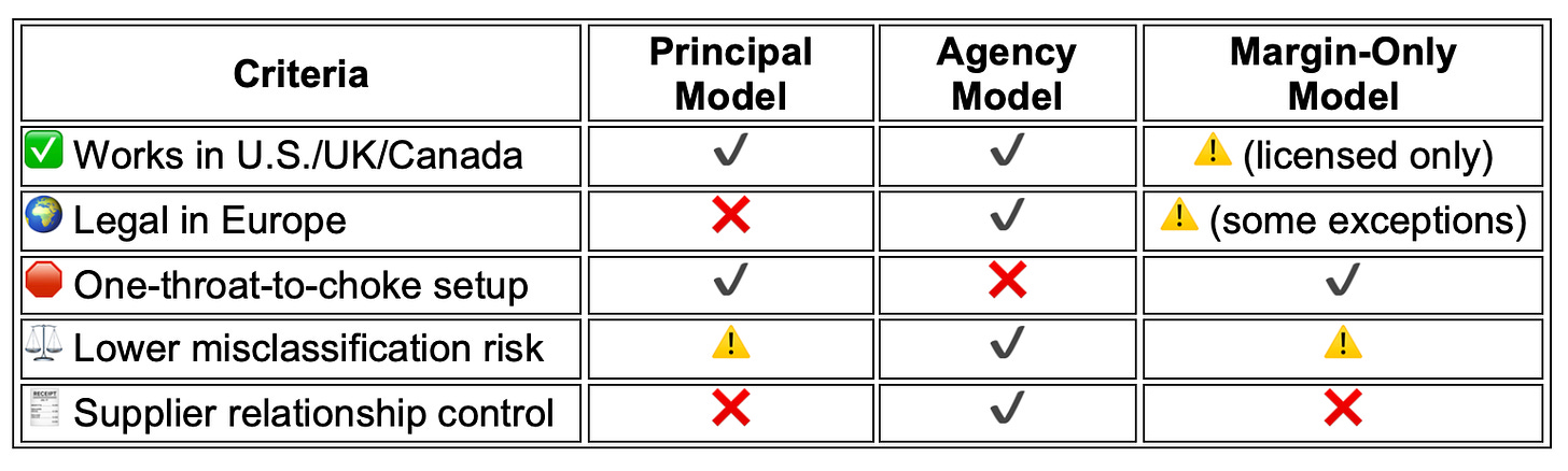 But here’s the legal kicker: in many countries, the very structure of that outsourcing arrangement is subject to local labor laws, agency licensing rules, tax regulations, and worker protections — most of which have zero tolerance for the U.S.-style “Principal Model” MSP setup.