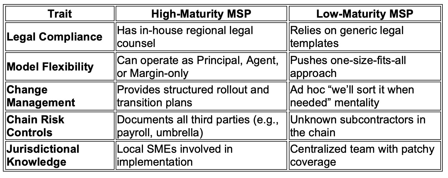 Here’s a quick framework to help evaluate an MSP’s legal maturity before they create more problems than they solve:
